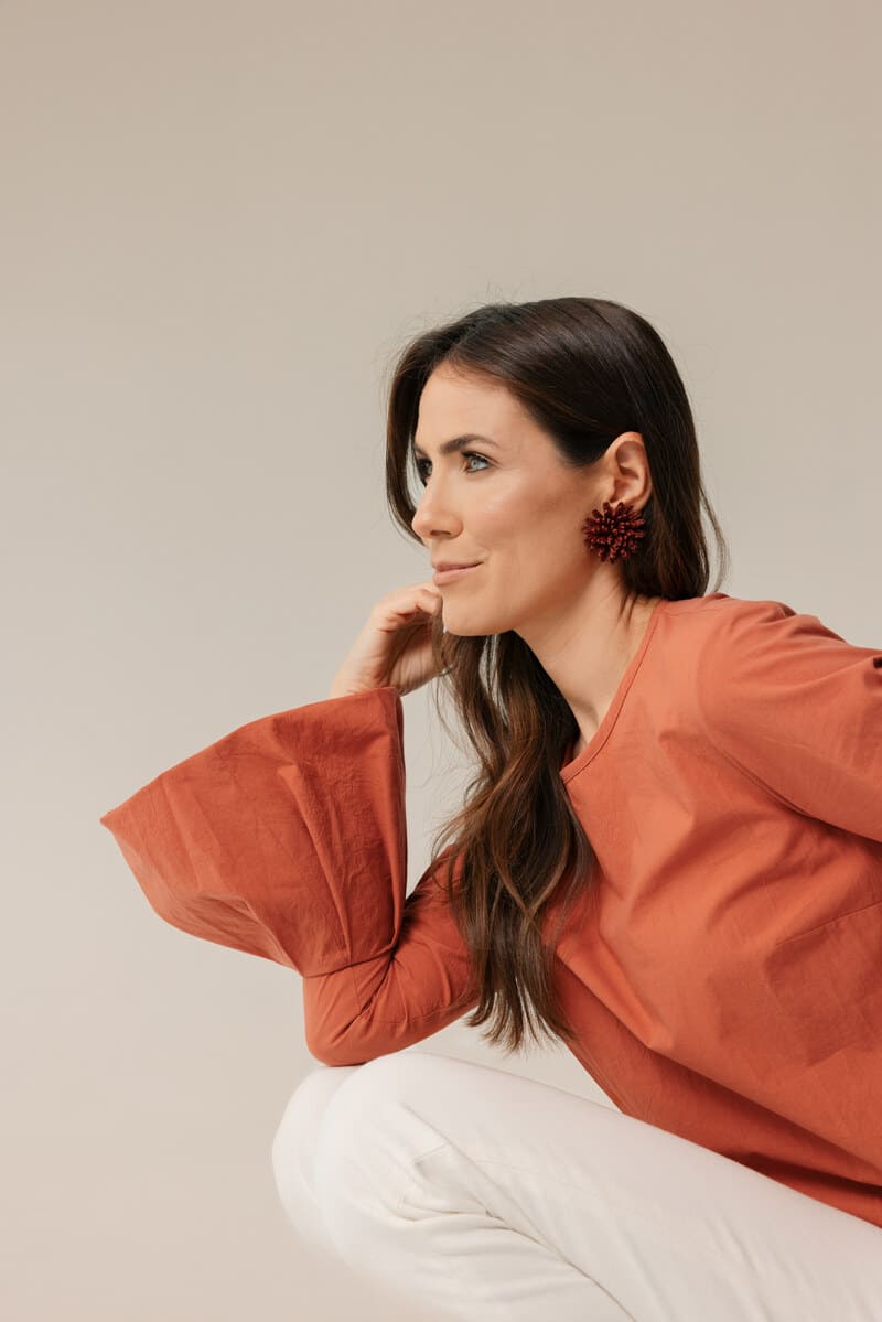 Frida terracotta blouse with flared cuff