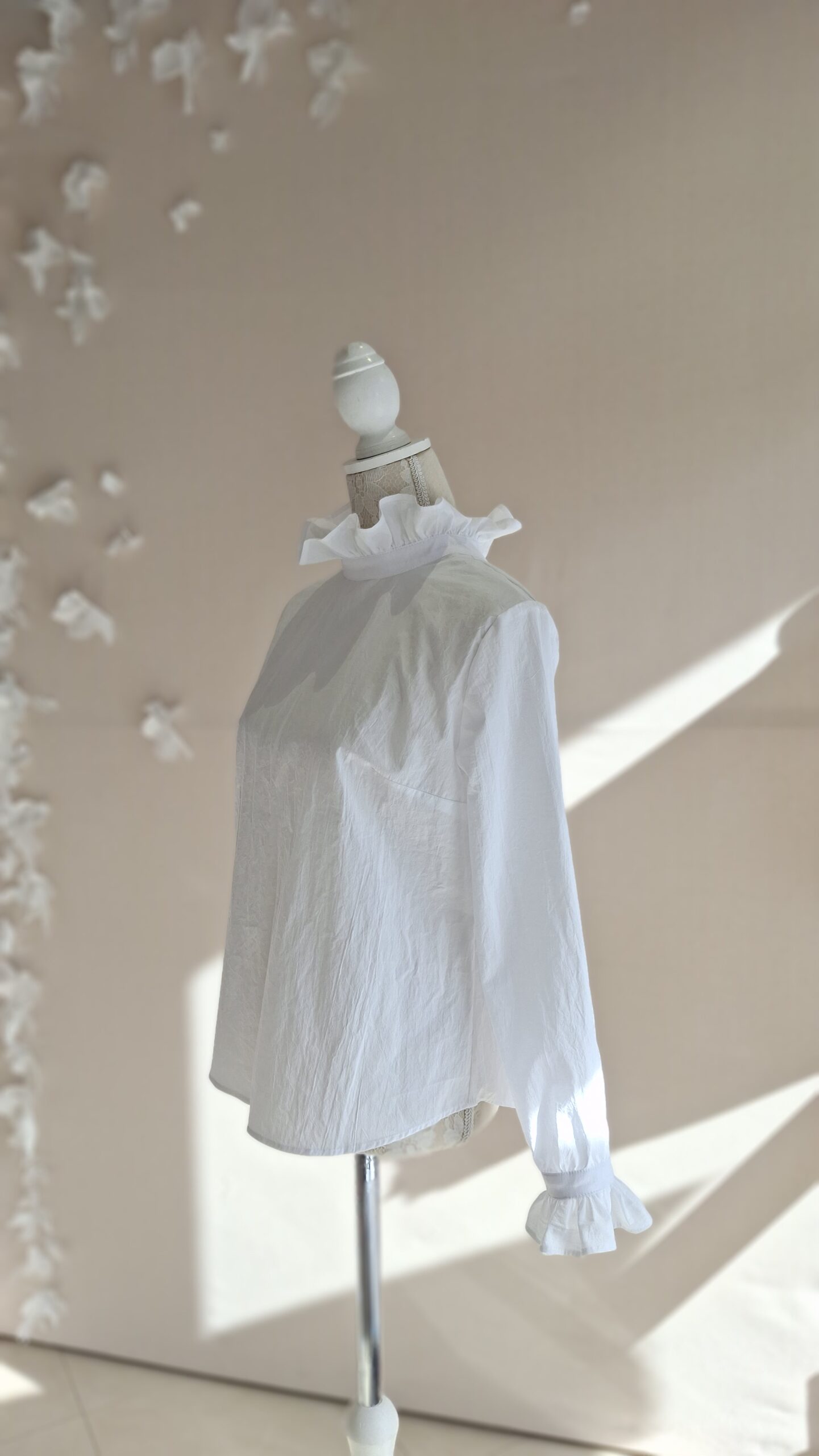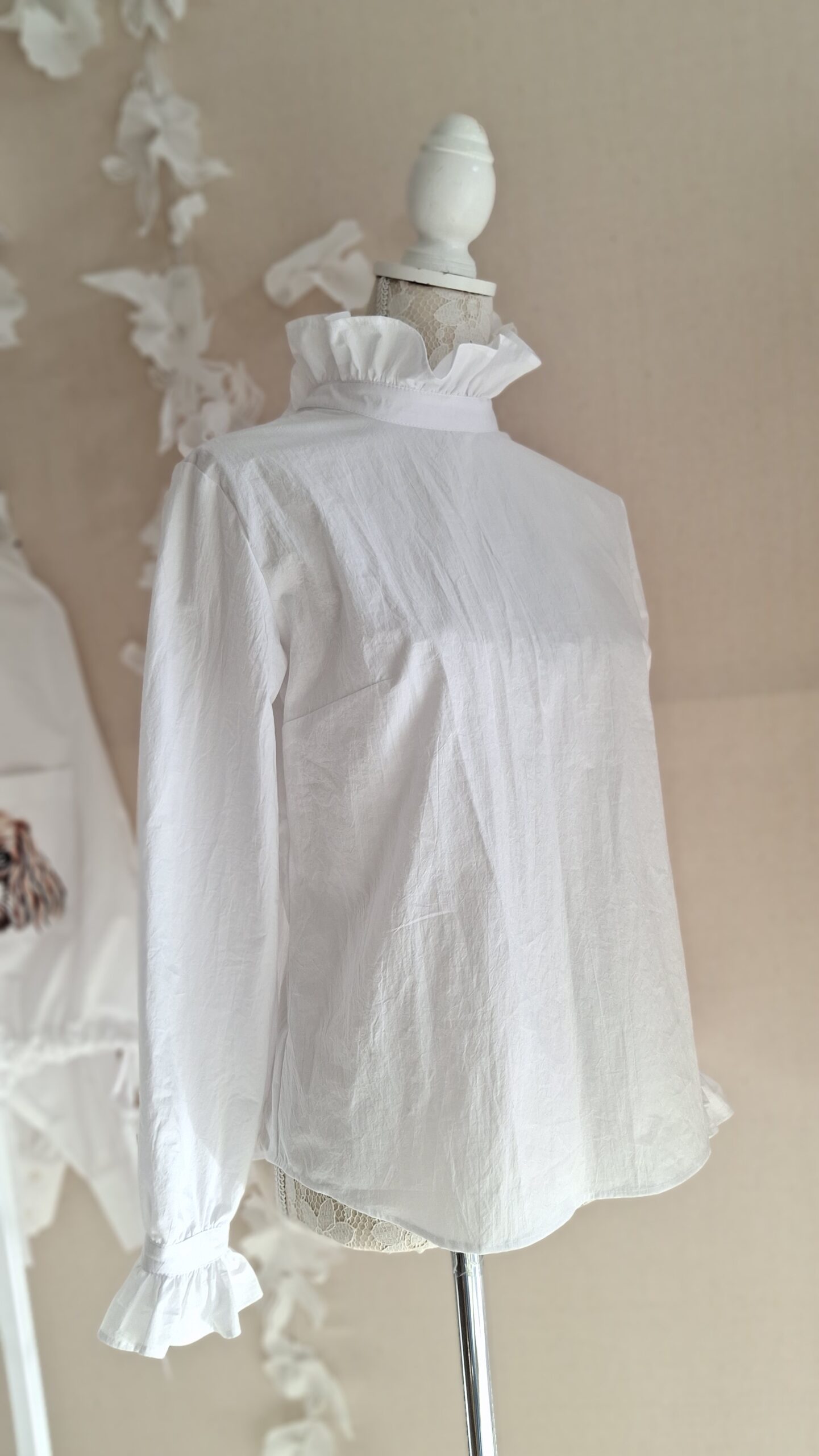 stójka i mankiety zakończone falbanką